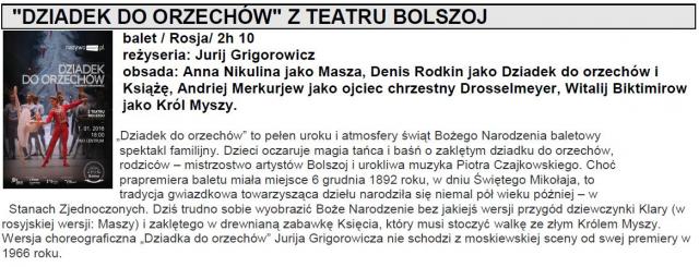 "DZIADEK DO ORZECHÓW" Z TEATRU BOLSZOJ