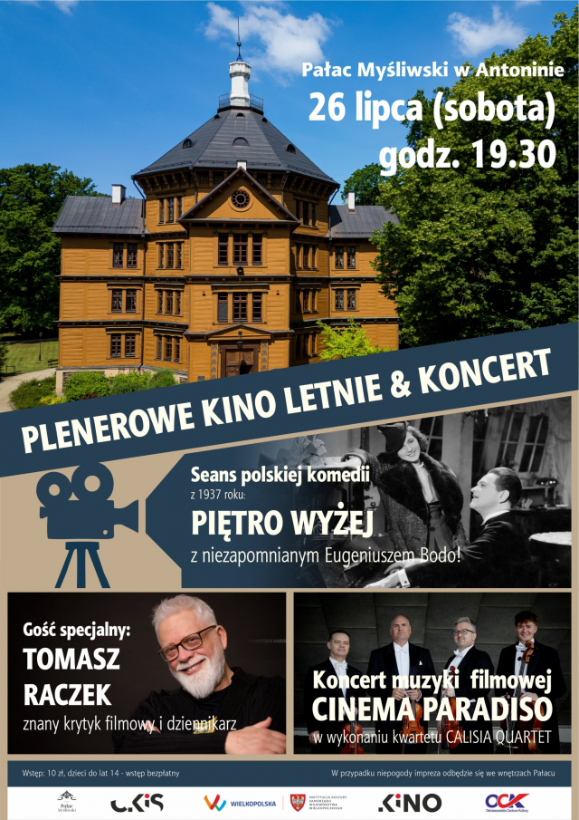 Plenerowe Kino Letnie z Tomaszem Raczkiem i koncert, a to wszystko w malowniczej scenerii – w tę sobotę w Pałacu Myśliwskim w Antoninie odbędzie się wydarzenie, którego nie można przegapić. O szczegółach powiedziała radiuCENTRUM Bożena Henczyca, wicedyrektorka Centrum Kultury i Sztuki w Kaliszu.