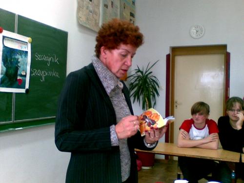 Chętnych do spotkania z kaliską poetką było tak wielu uczniów, że trzeba było podzielić ich na dwie grupy. Organizatorem lekcji był Dom Kultury w Łomiankach.