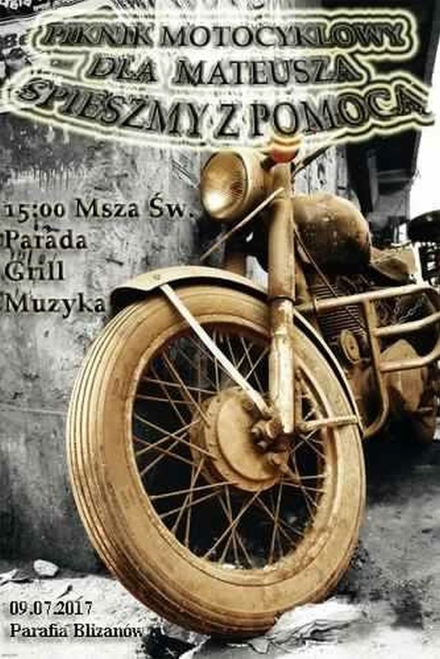 Piknik Motocyklowy dla Mateusza - pod takim hasłem w tę niedzielę odbędzie się impreza w Blizanowie. Miłośnicy jednośladów i dobrej zabawy mogą wesprzeć akcję zbiórki pieniędzy na leczenie 18-latka. "Chłopak w ubiegłym roku uległ wypadkowi i zmaga się z czterokończynowym porażeniem" - mówi radiuCENTRUM Donat Herszel, inicjatorka przedsięwzięcia.