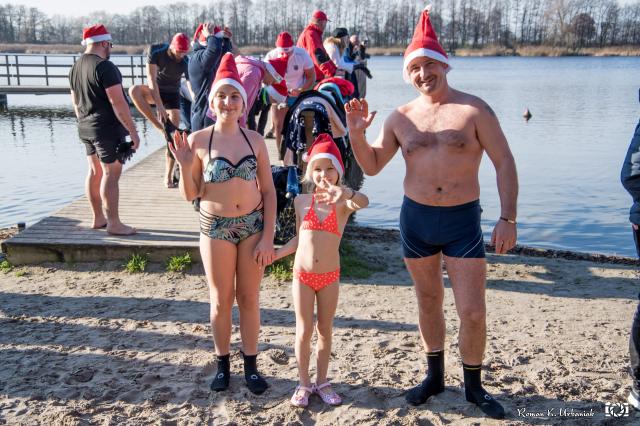 Ponad 100 miłośników lodowatych kąpieli spotkało się w niedzielne południe na plaży w Gołuchowie, aby wspólnie świętować "morsowe mikołajki". Niedzielna, zimna kąpiel odbywała się przy słonecznej pogodzie, choć jak przyznali radiuCENTRUM morsujący, dodatnia temperatura powietrza powoduje, że woda wydaje się być zimniejsza niż w rzeczywistości. Mimo tego gołuchowskie morsy, po wspólnym zdjęciu i wizycie świętego Mikołaja, na sygnał trąbki, bez wahania wskoczyły do lodowatej wody.