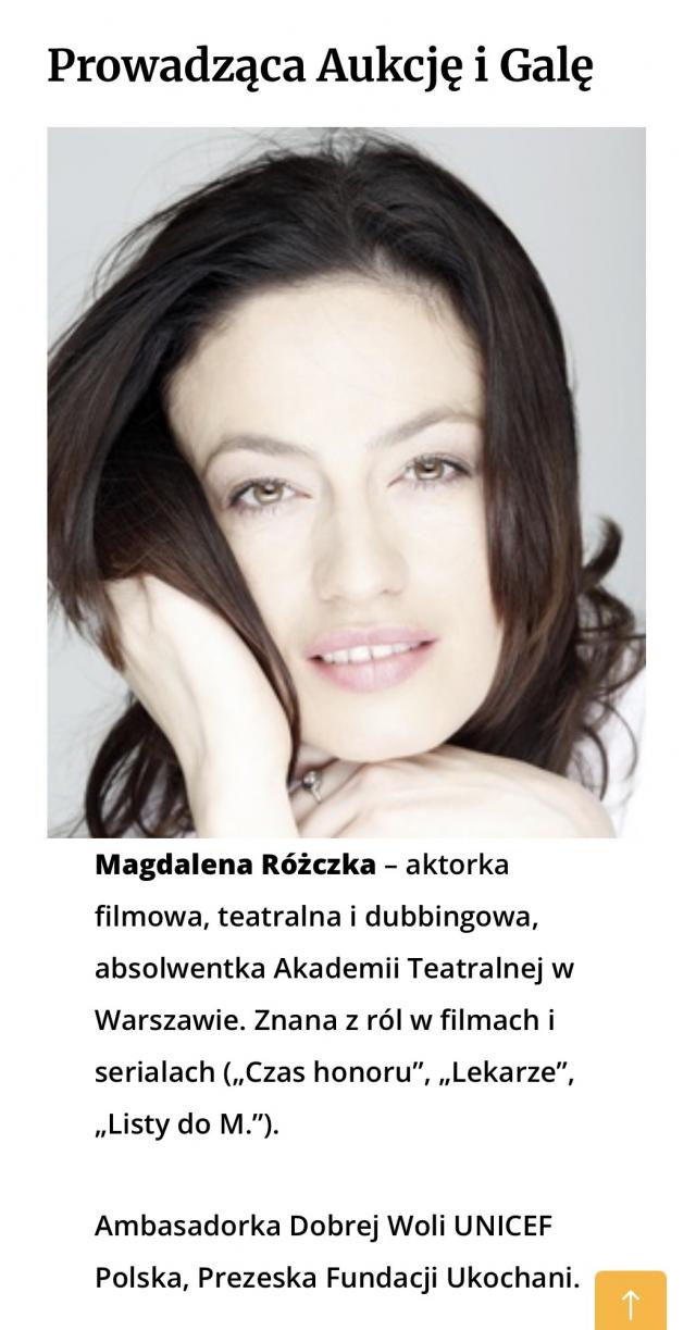 "Bal będzie, myślę, wyjątkowy, bo w wyjątkowym miejscu, w Pałacu Tłokinia, które samo w sobie jest niezwykłe. Poprowadzi to wybitna aktorka, Magdalena Różdżka, która jak się dowiedziała o balu, od razu się zdecydowała. Poprowadzi zarówno bal jak i aukcje, które będą się odbywały. Będzie możliwość wylicytowania grafik i obrazów pana Janusza Kokota, to jest kaliskiego artysty, a jednocześnie też wieloletniego wolontariusza Fundacji CHOPS".