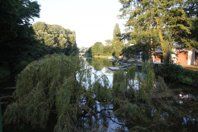 Bobry żerują przy ogromnej powalonej do Prosny w Kaliszu wierzbie, która złamała się i wpadła do rzeki podczas poprzedniej nawałnicy sprzed około trzech tygodni. Drzewo zalega w kanale Rypinkowskim - tuż przy stawidłach, obok przystani wodnej KTW. Podniesienie tamy na rzece groziłoby utknięciem drzewa w zastawce, dlatego służby Regionalnego Zarządu Gospodarki Wodnej w Poznaniu zdecydowały o wyciągnięciu wierzby z wody.