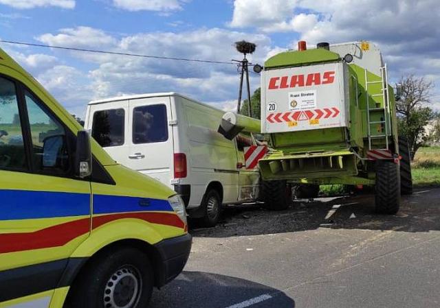 Osobowy bus, którym podróżowała rodzina z dziećmi, zderzył się z rolniczym kombajnem. Do wypadku doszło w środę około 15-tej, na drodze wojewódzkiej nr 470 - to trasa Kalisz-Turek.