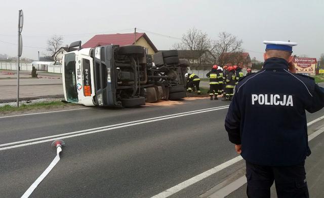 Ze wstępnych ustaleń i wyjaśnień kierowcy wynika, że wyjeżdżąjąc cysterną z pobliskiego zajazdu na drogę krajową zbyt mocno podkręcił kołami, stracił panowanie nad pojazdem, a ten przewrócił się do rowu. Na miejscu pracowało 7 zastępów straży pożarnej.