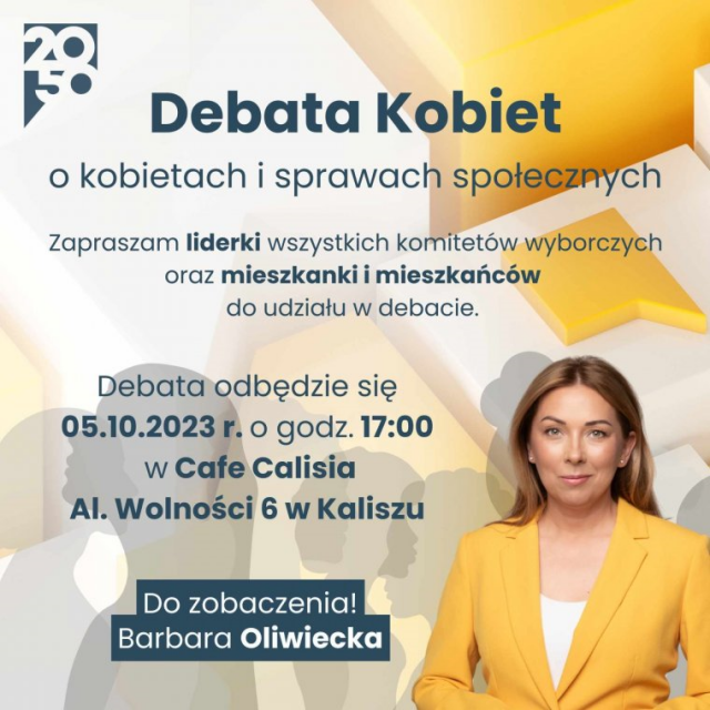 Debata kobiet odbędzie się w czwartek 5 października w Café Calisia przy al. Wolności 6 w Kaliszu. Początek o godz. 17:00.