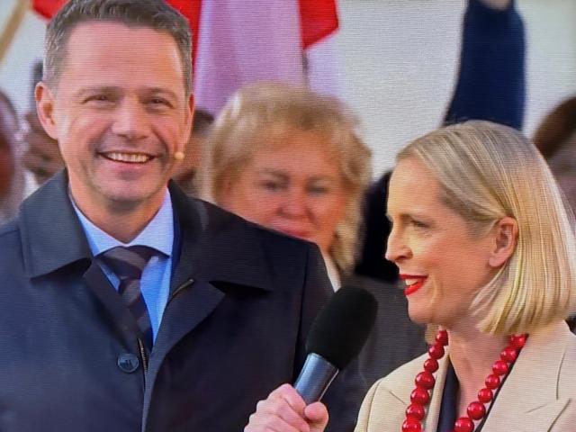 na fot.: Rafał i Małgorzata Trzaskowscy oraz kultowe już, czerwone korale podarowane przez Joannę Senyszyn