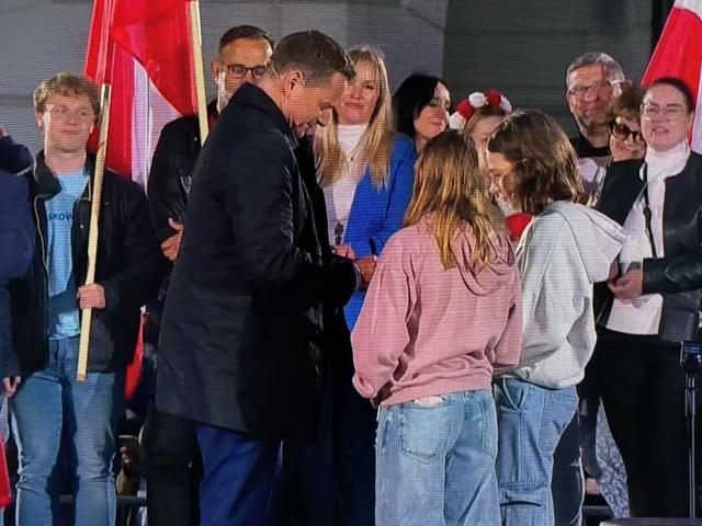 na fot.: Rafał Trzaskowski i pan Karol Nawrocki z Kalisza