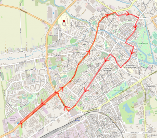 Tesco; Wojska Polskiego; Majkowska; 3 Maja; pl. Kilińskiego; Sukiennicza; al. Wolności i Bankowa; Ułańska; Rogatka; Górnośląska; Podmiejska; Rondo; Tesco.