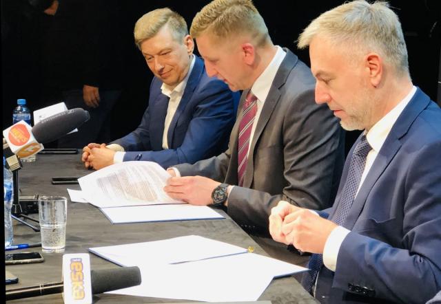 na fot. od prawej: Marek Woźniak / marszałek województwa wielkoposkiego; Dariusz Grodziński / dyrektor CKiS w Kaliszu; Mariusz Witczak / poseł PO