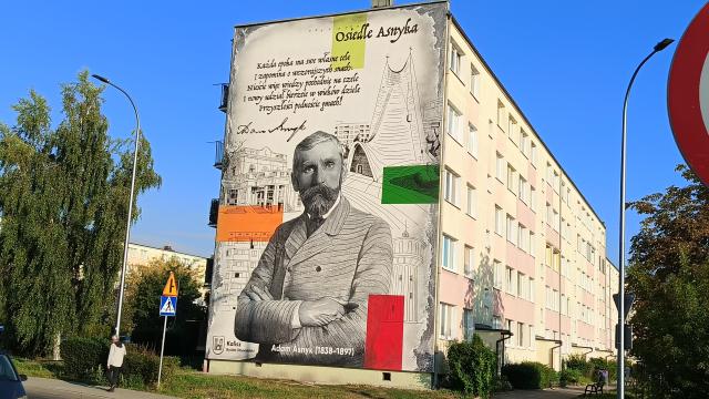 „Mural przedstawia Adama Asnyka – wielkiego polskiego poetę, patrona osiedla i dumę Kalisza. Portretowi towarzyszą elementy nawiązujące do jego twórczości oraz fragmenty lokalnej architektury, które pięknie podkreślają naszą historię i tożsamość" - informuje w mediach społecznościowych Rada Osiedla Asnyka.