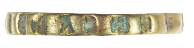 na fot.: Złota obrączka z napisem wyrytym cyrylicą: "Boże dopomóż swojej słudze Marii"