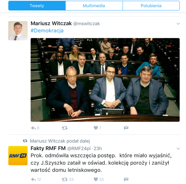 Takim właśnie hasztagiem oznaczył swój wpis na Twitterze kaliski poseł Platformy Obywatelskiej Mariusz Witczak (1 z prawej w 2 rzędzie), ilustrując go zdjęciem z nocnego dyżurowania w okupowanej sali Sejmu RP.