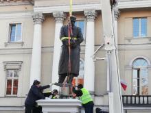 Waży 600 kg, mierzy 2,7 m, a wykonany został ze stopu brązu. W środku jest pusty, ale solidnie ożebrowany, co oznacza, że jego struktura jest mocna. Mowa o pomniku marszałka Józefa Piłsudskiego, którego ustawianie na przygotowanym wcześniej cokole rozpoczęło się w czwartkowe przedpołudnie w Kaliszu w Alei Wolności. Całość konstrukcji, którą umieszczono na skwerku przed Sądem sięga 6-ciu metrów. Postać marszałka zwrócona jest twarzą w kierunku ul. Sukienniczej. W jednej ręce trzyma buławę, a w drugiej szablę, na której się wspiera. Operacją ustawienia pomnika kierował Jakub Jarczewski, który jest również wykonawcą cokołu. Odlew sylwetki Piłsudskiego wykonano w pracowni w Kielcach.