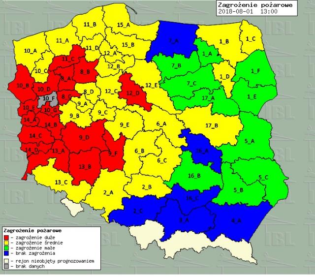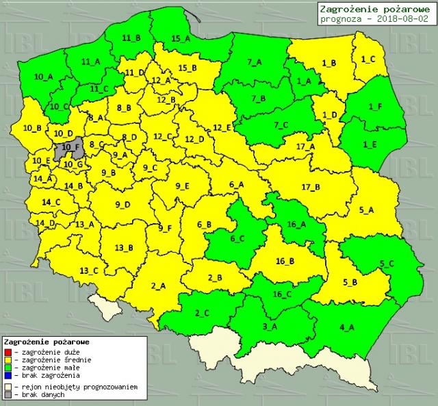 graf. Stopien zagrożenia pożarowego / region kaliski oznaczony jest 9_F.