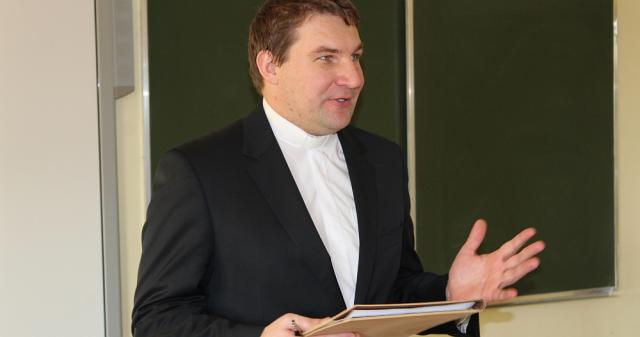 na fot. ks. Adam Kraska / dyrektor Zespołu Szkół Technicznych Diecezji Kaliskiej
