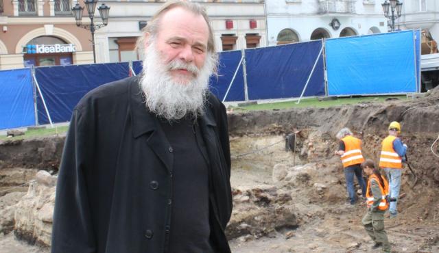 na fot.: Leszek Ziąbka / archeolog z kaliskiego Muzeum Okręgowego