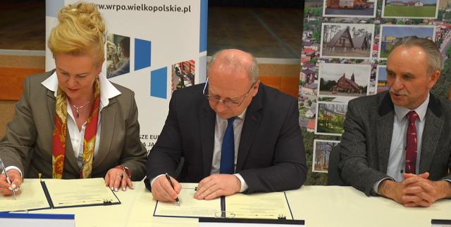 na fot. od lewej: Marzena Wodzińska / zarząd Województwa Wielkopolskiego, Krzysztof Niedźwiedzki / wójt Gminy Brzeziny, Krzysztof Nosal / starosta kaliski