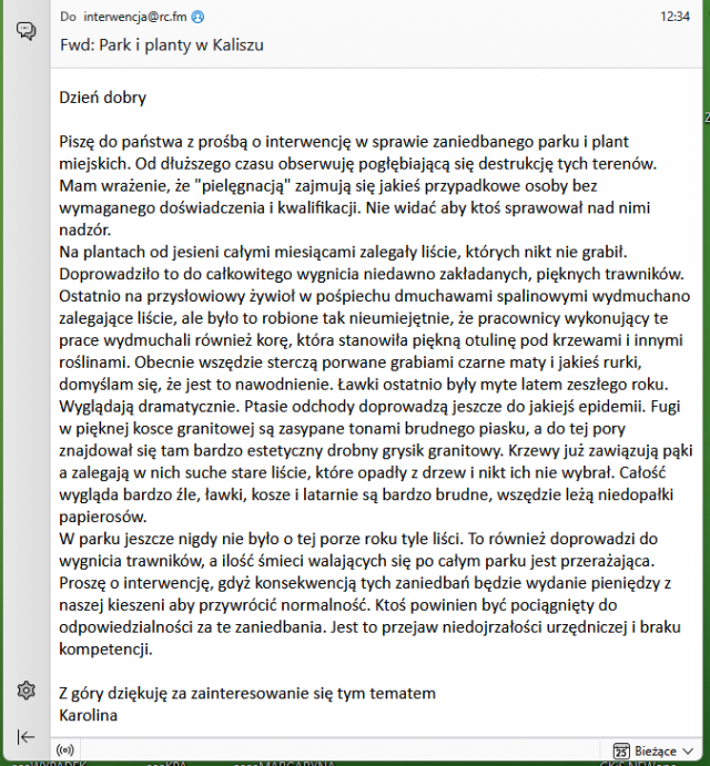 Nadal czekamy na odpowiedź Urzędu Miejskiego w Kaliszu w sprawie stanu Skweru Eligiusza Kor-Walczak przy ul. Kopernika, a już mamy kolejne zgłoszenie interwencyjne od mieszkanki miasta - Karoliny.