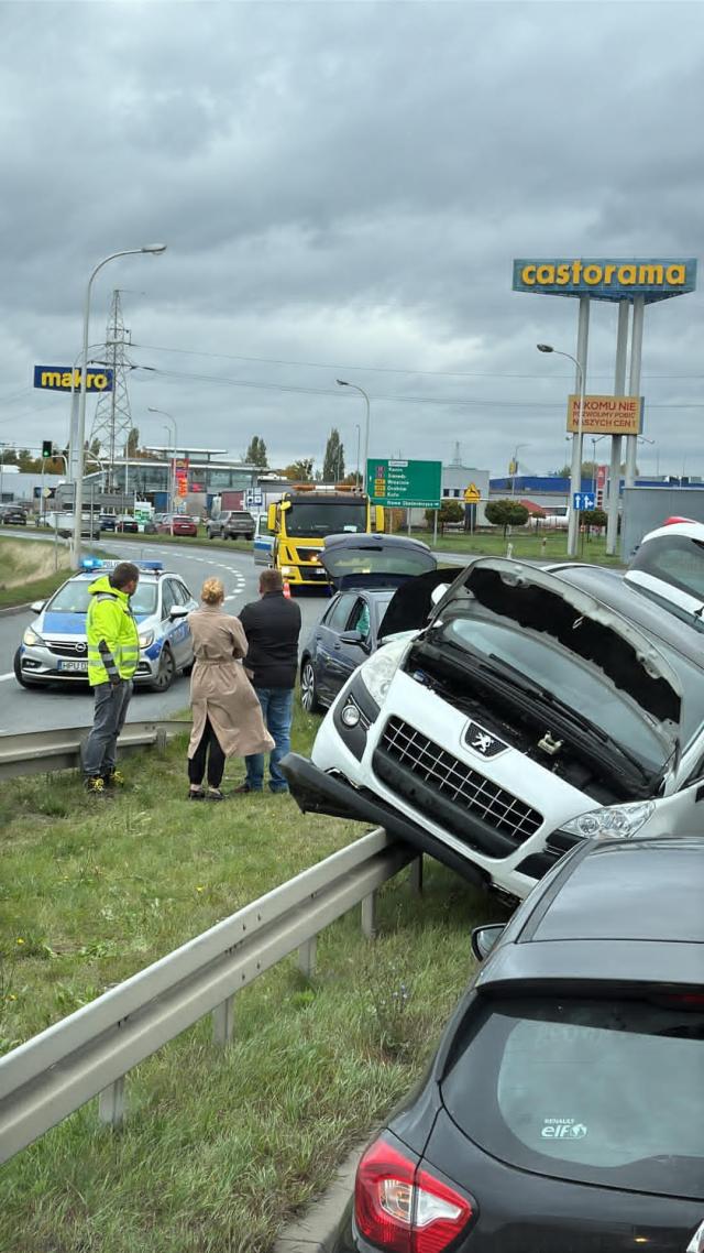 Zderzenie dwóch aut osobowych na ulicy Inwestorskiej w Kaliszu - na wjeździe na obwodnicę Nowych Skalmierzyc. Informacje o zdarzeniu, w którym udział biorą Peugeot i VW służby ratunkowe otrzymały w sobotę, 18 października ok. 12:40.