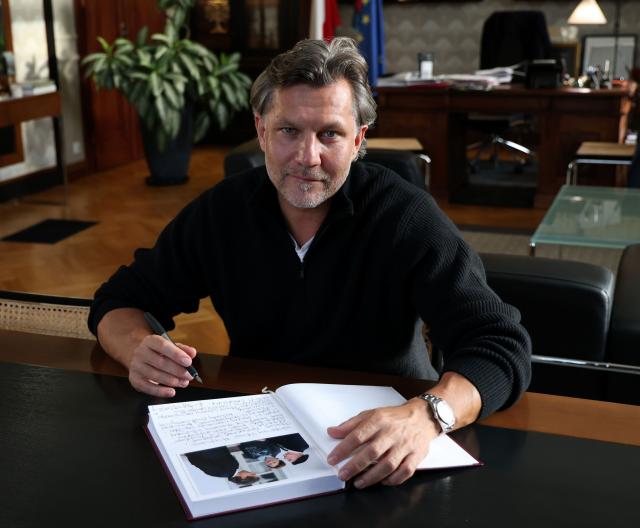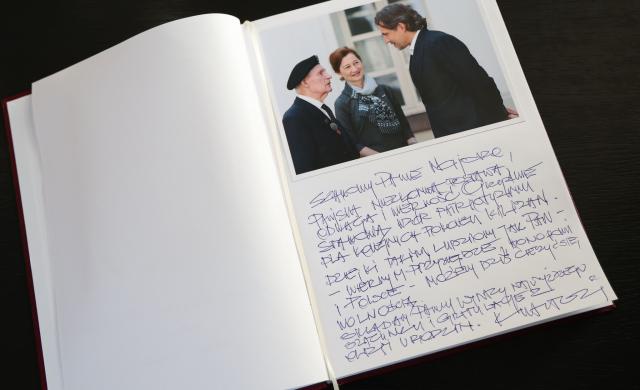 na fot.: Krystian Kinastowski wpisujący życzenia do księgi