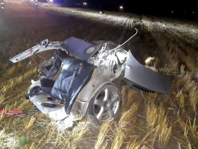 BMW roztrzaskane na 2 części. Do groźnie wyglądającego zdarzenia doszło w niedzielę po północy na trasie Starkówiec - Łagiewniki (gm. Kobylin, pow. krotoszyński). Do służb ratunkowych wypłynęła informacja o dachowaniu osobówki i możliwym potrąceniu motocyklisty.
