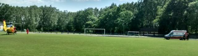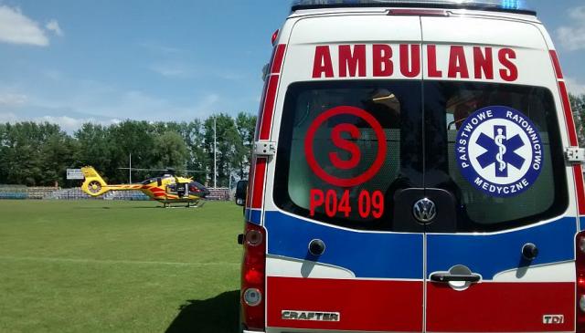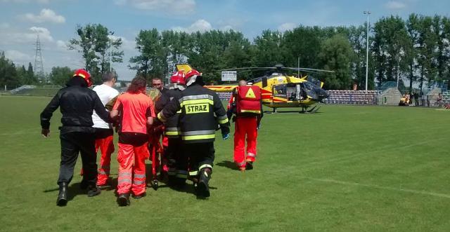 Wezwany na miejsce lekarz, z uwagi na poważny stan rannego mężczyzny, zawiadomił Lotnicze Pogotowie Ratunkowe. Śmigłowiec wylądował na płycie pobliskiego stadionu, a do śmigłowca ranny przetransportowany został karetką.