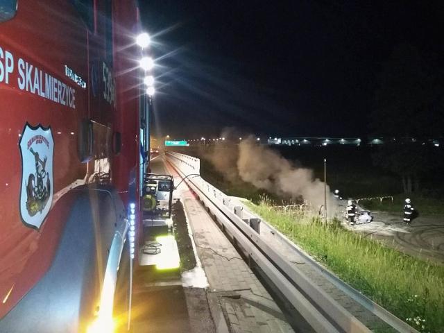 Pożarem samochodu zakończyła się jazda osobowego BMW po ciągu pieszo-rowerowym przy ulicy Bielawskiej w Skalmierzycach. Do zdarzenia doszło w czwartek, którko przed godziną 23-cią.