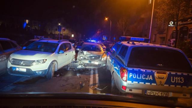 "Ze wstępnych ustaleń funkcjonariuszy pracujących na miejscu wynika, że kierujący pojazdem marki Skoda, nie zachowując bezpiecznej odległości od poprzedzającego go pojazdu, uderzył w jadącą przed nim Dacię. W wyniku zderzenia ta przemieściła się i uszkodziła zaparkowany przy ulicy samochód marki Kia. Skoda natomiast zjechała na przeciwległy pas ruchu, gdzie doszło do zderzenia z policyjnym radiowozem. Podczas wykonywanych czynności policjanci sprawdzili stan trzeźwości uczestników zdarzenia. Badanie alkomatem wykazało, że kierujący Skodą miał blisko 1,3 promila alkoholu w organizmie oraz posiadał czynny sądowy zakaz prowadzenia pojazdów. Z kolei kierujący Dacią również znajdował się w stanie nietrzeźwości - w jego organizmie stwierdzono 2,5 promila alkoholu" - poinformowała ostrowska komenda.