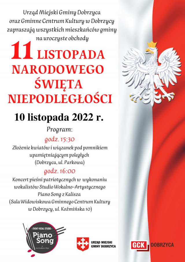 W piątek patriotyczne pieśni będą śpiewane w Ośrodku Kultury w Żegocinie z wokalistką Kasią Zawadą, w Dobrzycy z zespołem Piano Song z Kalisza. W sobotę, w Muzeum Regionalnym w Pleszewie, będzie patriotyczne śpiewanie przy akompaniamencie pianistki Marii Rutkowskiej. Ale 11 listopada to także flaga wywieszona na domu oraz rogale zwane świętomarcińskimi na cześć patrona stolicy Wielkopolski św. Marcina. Wiąże się z tym wiele legend. Smakowite ciastko, z certyfikatem, przypomina podkowę i jest w Pleszewie nieodłącznym atrybutem 11 listopada.