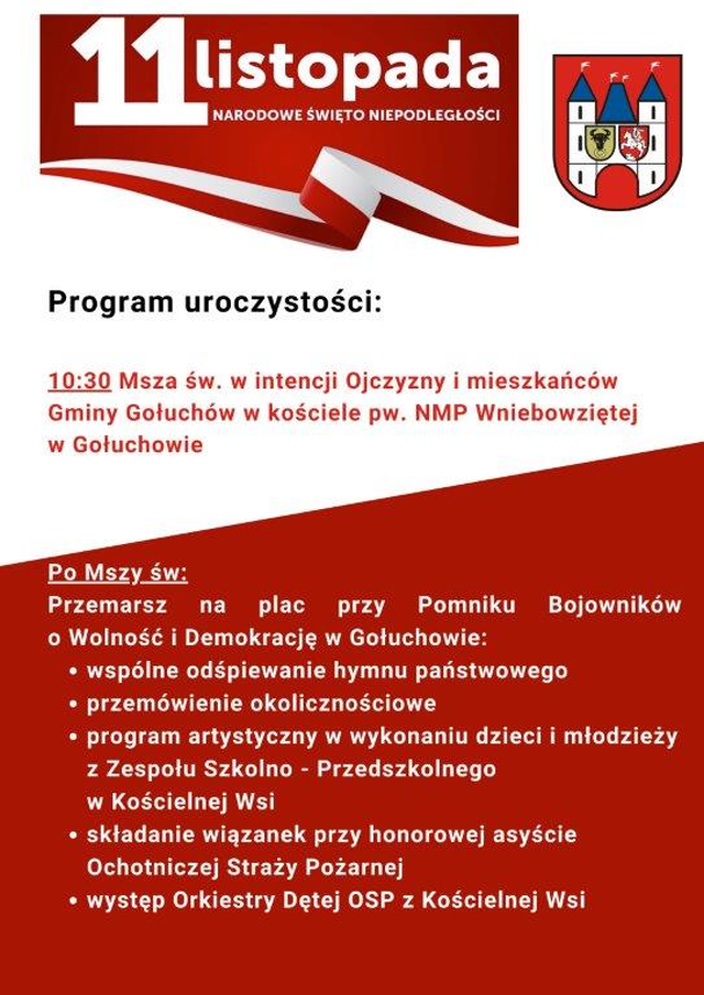 I chociaż Wielkopolska musiała sobie wywalczyć niepodległość w powstaniu wielkopolskim, świętuje razem z całą Polską. W Pleszewie, Gołuchowie, Choczu tego dnia odbędą się msze w intencji Ojczyzny. Zostaną złożone kwiaty i zapłoną znicze w miejscach pamięci narodowej m.in. na dworcu w Kowalewie przy tablicy upamiętniającej przejazd Józefa Piłsudskiego 25 października 1919 roku.