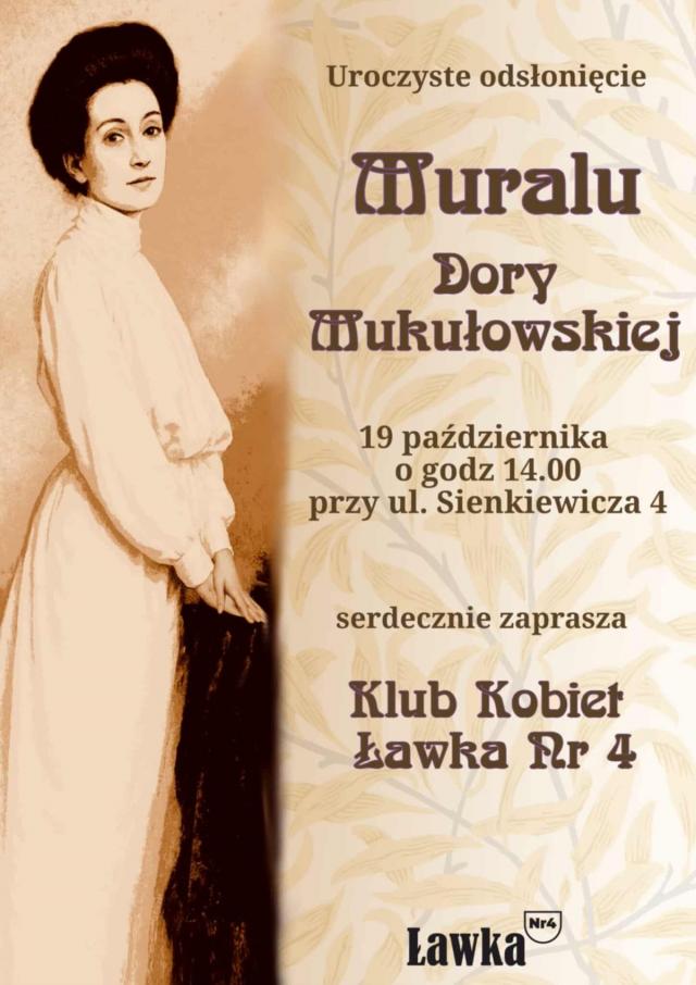 W niedzielę, 19 października, o godzinie 14:00 na murze kamienicy przy ulicy Sienkiewicza w Pleszewie zostanie odsłonięty mural upamiętniający Dorę Mukułowską – malarkę i uczestniczkę powstania wielkopolskiego, urodzoną w 1880 roku w pałacu w Kowalewie.