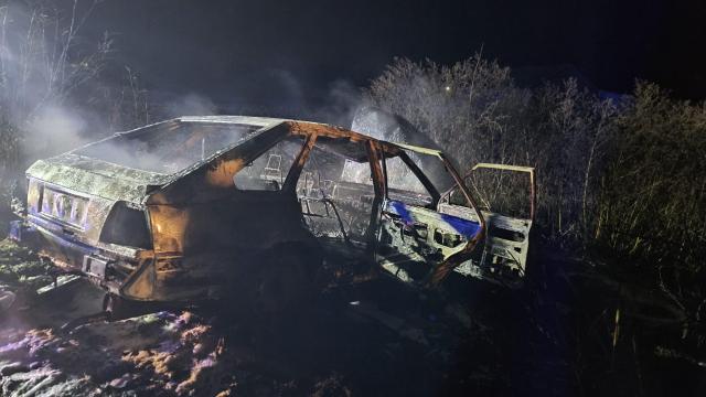 Kierujący Polonezem był trzeźwy. Auto doszczętnie spłonęło.