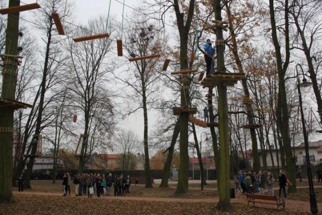 "Tu powstają nowe ścieżki dla pieszych i rowerzystów, oświetlenie, cała mała architektura. W ubiegłym roku otworzyliśmy tu skatepark, a teraz park linowy. Zaplanowany jest na różne umiejętności i wiek, na trzy stopnie trudności. Oprócz tego powstaną też 2 ścieżki edukacyjne."