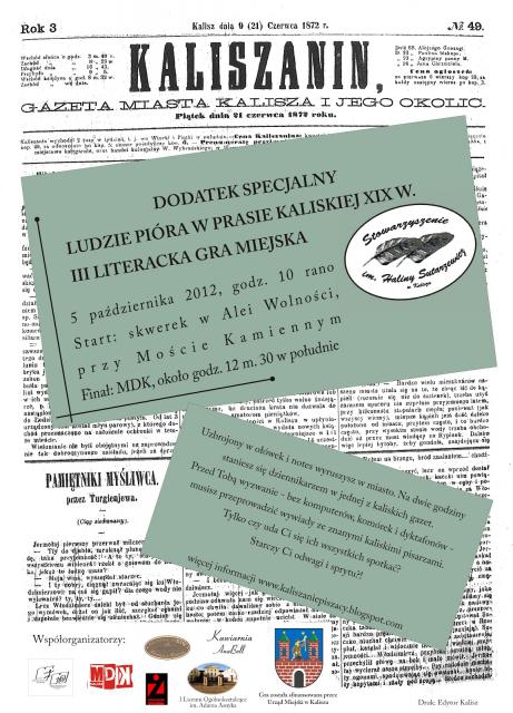 "Tegoroczna gra jest przypomnieniem ludzi, którzy tworzyli w XIX w. w Kaliszu lokalne gazety. To sposób na poznanie historii miasta od innej strony" - powiedział Radiu Centrum Maciej Stadtműller ze Stowarzyszenia im. Haliny Sutarzewicz.