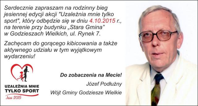 Akcję "Uzależnia mnie tylko sport" w całości finansuje Urząd Marszałkowski Województwa Wielkopolskiego. Edycja w Godzieszach od 13:00, na tamtejszym Rynku.