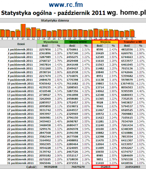 Najpopularniejsza lokalnie, codzienna gazeta w Internecie - portal informacyjny Radia Centrum: www.rc.fm - uzyskała w październiku średnio ponad 11 300 odsłon DZIENNIE. To wyniki nieustannie rekordowe i bezkonkurencyjne na lokalnym rynku mediów. Dziękujemy Czytelnikom i Słuchaczom.