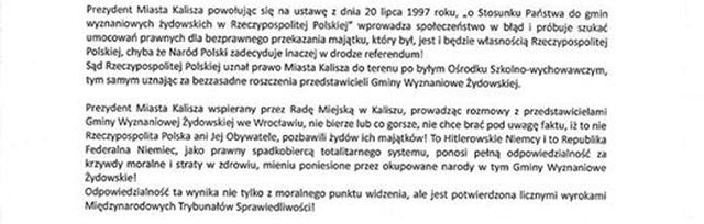 Niestety, pojawiające się w kaliskich mediach wypowiedzi przedstawicieli strony żydowskiej pokazują, że to aspekt polityczny, a nie rzetelna ocena sprawy, stanowi jej meritum.