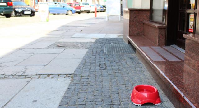 Miska z wodą ustawiona na chodniku, tuż obok wejścia do sklepu - taki widok nadal jest w Kaliszu rzadkością, ale te, które pojawiają się na trotuarze, cieszą tym bardziej.