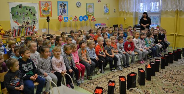 się do wzrostu bezpieczeństwa najmłodszych uczestników ruchu drogowego. Podczas uroczystego wręczenia prezentów komisarz Klaudiusz Woźniak z posterunku Policji w Nowych Skalmierzycach przeprowadził pogadankę na temat bezpieczeństwa, a dzieci zrewanżowały się gościom zaprezentowaniem wierszyków i piosenek oczywiście o tym jak bezpiecznie poruszać się na drodze.