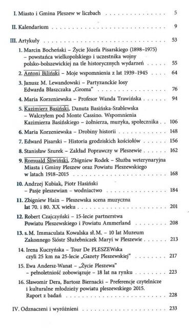 To już czternasty numer rocznika, którzy tworzą pleszewianie dla pleszewian. Redaguje go zespół złożony z pracowników Muzeum Regionalnego z Adamem Staszakiem na czele oraz dyrektorka Biblioteki Publicznej MiG Pleszew Elżbieta Mielcarek. W każdym numerze są statystyki, kalendarium najważniejszych wydarzeń minionego roku, sylwetki zasłużonych dla rozwoju miasta i gminy, sylwetki Ludzi Roku. Ale nie tylko. W każdym numerze jest coś z historii. W tym numerze "Historia grodziskich kościołów", historia służby weterynaryjnej w latach 1918 - 2015, wspomnienie o bohaterze spod Monte Cassino - Kazimierzu Basińskim. Jest też historia nowsza, m.in. artykuł o pleszewskich zespołach muzycznych w latach 70. i 80., czy historia pleszewskiego wodniactwa. Jest też historia "Gazety Pleszewskiej", która w 2015 roku obchodziła 25. urodziny na rajdzie rowerowym. Rocznik liczy 240 stron, jest wzbogacony zdjęciami. Można i warto go zakupić w Muzeum Regionalnym.