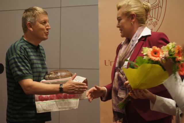 na fot.: Wszyscy goście otrzymali upominki od Samorządu Województwa Wielkopolskiego