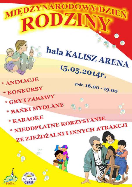 Międzynarodowy Dzień Rodzin będzie okazją do dobrej zabawy w Kaliszu - w ten czwartek, przy hali Arena na kaliskim Dobrzecu odbędzie się wielki festyn rodzinny.