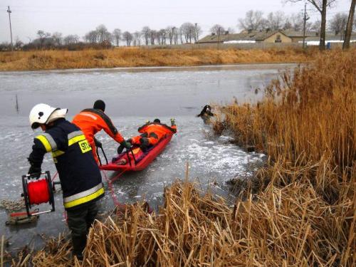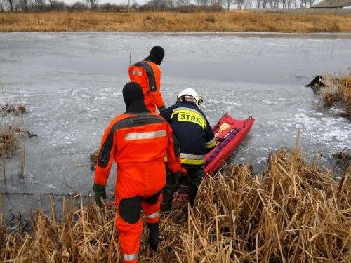 Krotoszyńscy strażacy uratowali w czwartkowy poranek psa, pod którym załamał się lód na stawie. Wydarzenia rozegrały się w miejscowości Orla w gminie Koźmin Wielkopolski.