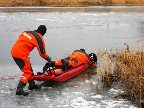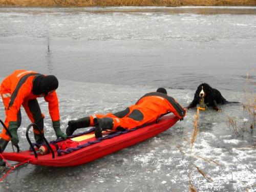 "Zgłoszenie do Państwowej Straży Pożarnej w Krotoszynie wpłynęło o godzinie 7:40. Zaalarmowano nas, że pies, pod którym załamał się lód, do połowy jest w wodzie, a przednimi łapami usiłuje utrzymać się na tafli lodu. Na ratunek zwierzęciu wysłany został zastęp ratownictwa technicznego z saniami lodowymi z Jednostki Ratowniczo-Gaśniczej PSP z Krotoszyna i samochód z OSP Koźmin Wielkopolski. Ratownicy z JRG Krotoszyn za pomocą sań lodowych podpłynęli do psa. Ratownik złapał psa za przednie łapy, wyciągnął go na taflę lodu a następnie podprowadził po lodzie na brzeg" - powiedział Radiu Centrum Tomasz Niciejewski, zastępca komendanta krotoszyńskiej straży.