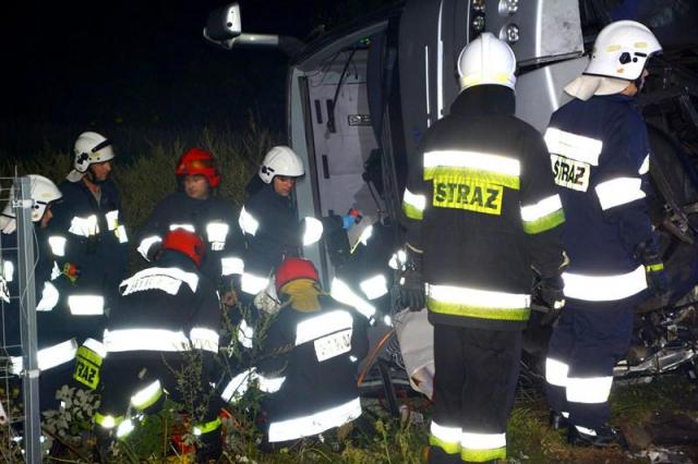 "Bilans tego wypadku to jedna ofiara śmiertelna, która zginęła na miejscu i kilkanaście osób rannych. Na szczęście wśród poszkodowanych nie ma dzieci, bo autokarem podróżowały tylko dorosłe osoby. Kierowca został już przesłuchany, ale potem poczuł się źle i również trafił do szpitala. Teraz ustalamy dokładne okoliczności wypadku, jednak ze wstępnych ustaleń wynik, że kierowca najzwyczajniej zasnął" - poinformował Radio Centrum st. asp. Radosław Szkudlarek, rzecznik wieruszowskiej policji.