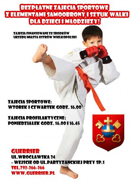 Ostrowski Klub Guerrier zaprasza dzieci na darmowe zajęcia sportowe. Program dofinansowany z funduszy miasta jest częścią działania przeciwko uzależnieniom. W tym wypadku profilaktyki poprzez sport. Z zajęć mogą skorzystać dzieci w każdym wieku - z całego miasta.