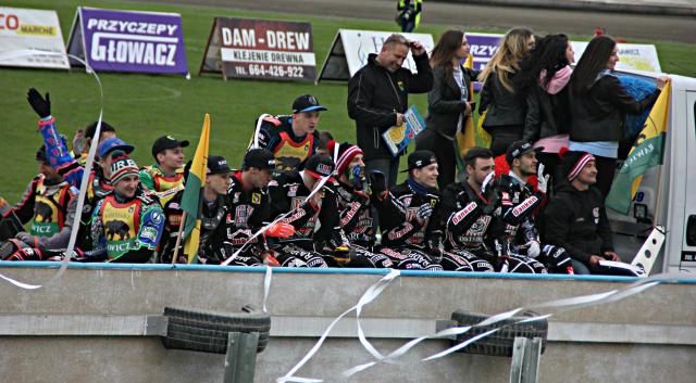 na fot. Żużlowcy obu drużyn podczas prezentacji