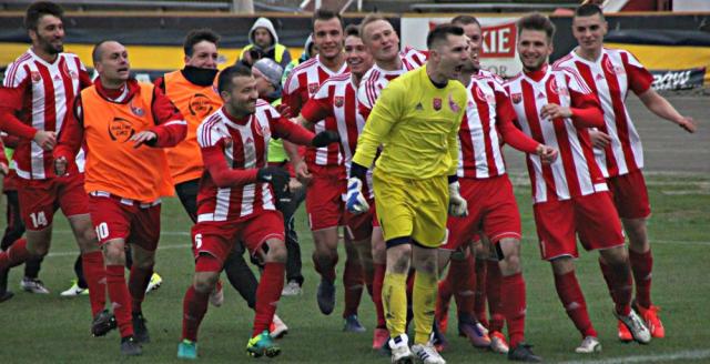 na fot.: Radość Ostrovii 1909 i jej bramkarza, Bartosza Jankowskiego