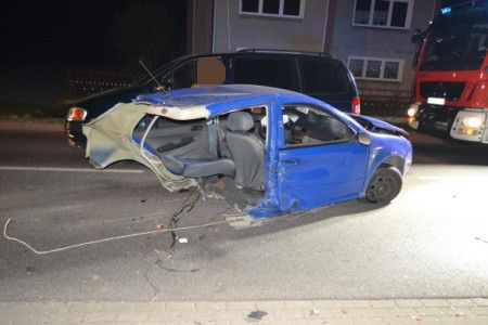 Rozerwana na dwie części Skoda to rezultat wypadku, do którego doszło w poniedziałek w miejscowości Parczew w gminie Sieroszewice (powiat ostrowski). Po godzinie 20-tej na prostym odcinku drogi zderzyły się tam trzy samochody osobowe : skoda Fabia, Saab 93 i Opel Sintra. Jak powiedział Radiu Centrum rzecznik ostrowskiej policji Artur Kurczaba, najprawdopodobniej przyczyną zderzenia było nieustąpienie pierwszeństwa przejazdu w momencie wykonywania skrętu w lewo samochodowi jadącemu z przeciwnego kierunku.